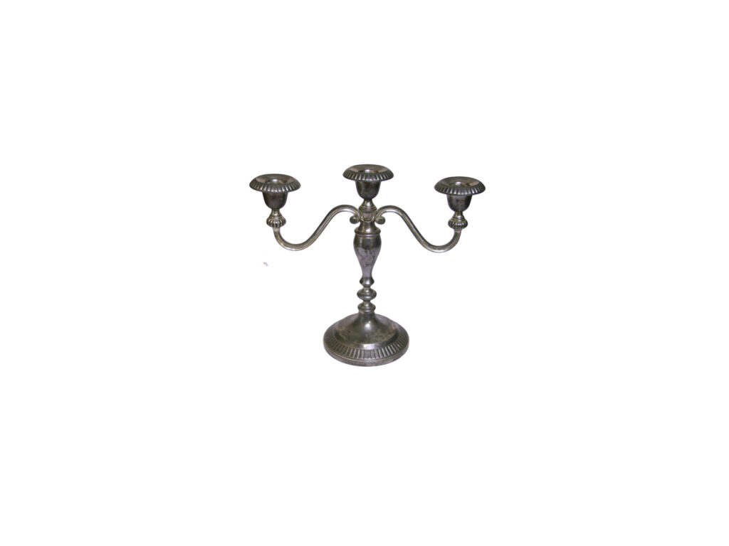 Kandelaar driearmig H 21 cm, zilverkleurig