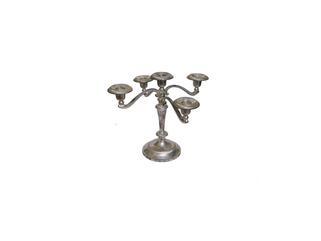 Kandelaar vijfarmig H 25 cm, zilverkleurig
