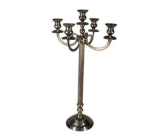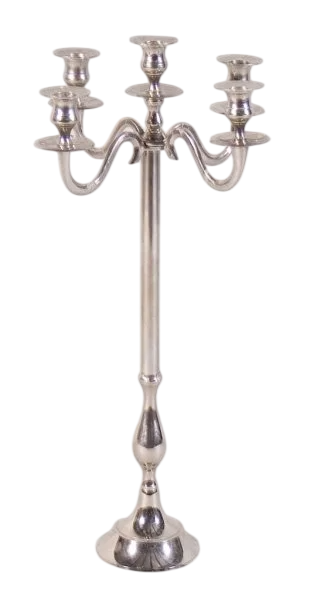 Kandelaar vijfarmig H 100 cm, zilverkleurig